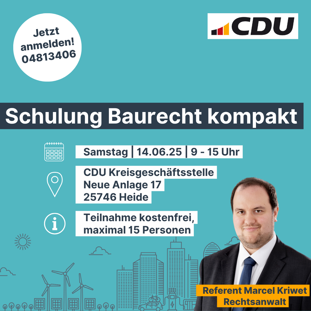 wir laden Euch herzlich zu einer praxisnahen Schulung zum Thema Baurecht ein. Diese Veranstaltung richtet sich an interessierte Mitglieder, die ihr Wissen in diesem Bereich vertiefen möchten – sei es für kommunalpolitisches Engagement oder aus persönlichem Interesse.