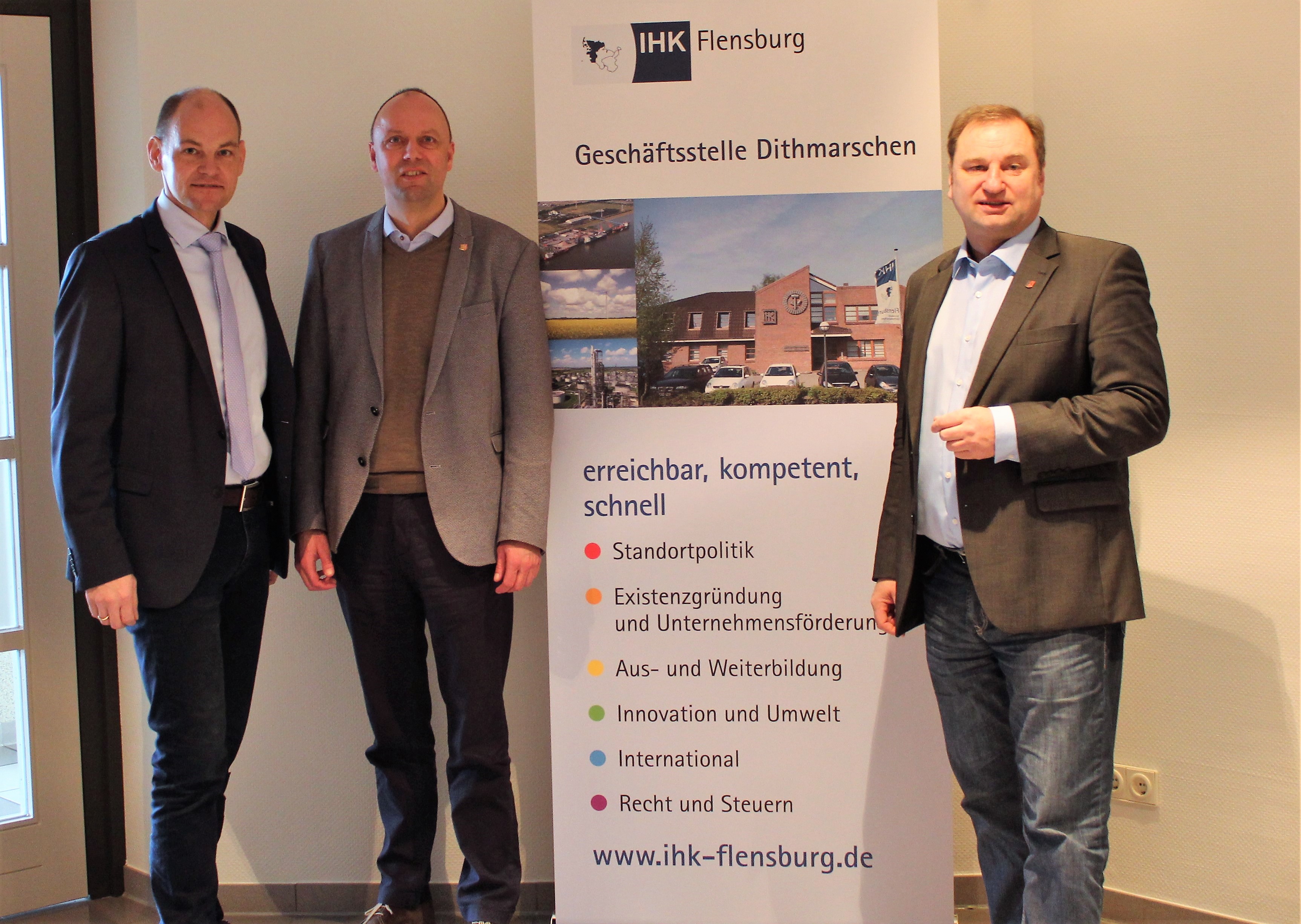 Die CDU Landtagsabgeordneten Andreas Hein und Volker Nielsen trafen sich in der Geschäftsstelle der IHK mit dem Leiter Thomas Bultjer, um die aktuellen Herausforderungen für Betriebe und Politik in Dithmarschen zu erörtern. „Die Auslastung der Unternehmen kann als gut bis sehr gut beurteilt werden, Fachkräfte werden gesucht“, so Bultjer. Zunehmend spielt es für Bewerber eine Rolle, ob genügend Kinderbetreuungsplätze im Umfeld eines Unternehmens oder im Wohnort vorhanden sind. Die Vereinbarung von Familie und Beruf ist entscheidend dafür, mehr Mitarbeiter einzustellen.