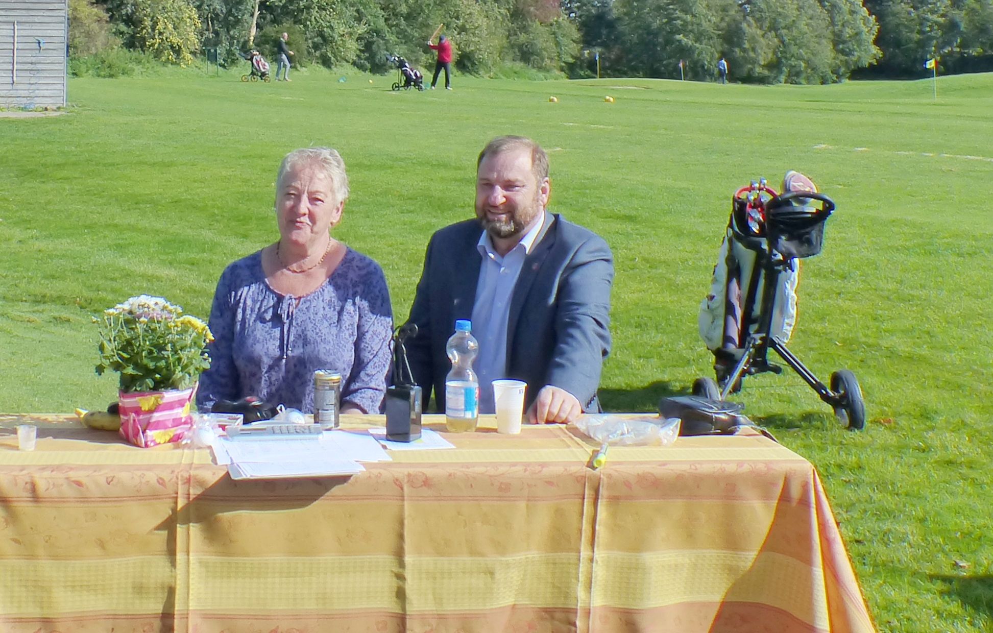 Der Rückweg erfolgte über den Bauernweg, Dingen und Friedrichshöfer Straße zur Einkehr beim Golfplatz Am Donner Kleve. Dort erwartete alle ein leckeres Grillbuffet und Egbert Ringert erzählte über die Entstehung und die Entwicklung des Golfclubs in Hopen. Als kleine Überraschung für die Gäste wurde eine Puttliga durchgeführt, die auch den Nichtgolfern merklich Spaß bereitete. Anschließend gab es die Möglichkeit den Golfplatz mit den neuen E-Carts zu erkunden.