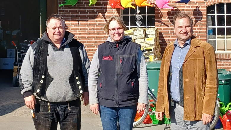 „Mein Urgroßvater Hans Jacob Haß hat das Unternehmen als klassischen Müllereibetrieb mit Windmühle zur Mehl und Tierfutterproduktion 1907 gestartet. Mein Großvater und auch mein Vater haben sich den veränderten Bedürfnissen der Landwirtschaft angepasst und auch ich ändere Sortiment und Angebot stetig“, so Inhaberin Klinck. Mit über 10.000 Artikeln kann der Landhandel Haß insbesondere für Landwirte, Gartenbesitzer, Tierhalter, gemeindliche Bauhöfe viele Bedürfnisse decken. Mit einem Kundenstamm im Radius von über 30 Kilometern hat der Betrieb regionale Bedeutung. „Ich freue mich über den großen unternehmerischen Einsatz von Tina Klinck. Hier kann man alles für Hof, Haus, Garten und Tierhaltung schnell und unkompliziert erhalten. Beratung durch die Inhaberin und mehrere Mitarbeiter sind garantiert“, lobt CDU Landtagsabgeordneter Volker Nielsen das Traditionsunternehmen in Süderhastedt bei seinem Betriebsbesuch. Der Landhandel zähle zu wichtigen systemrelevanten Partnern, um Lebensmittel zu produzieren. Aufgrund hoher Treibstoffkosten ist es nötig, im ländlichen Raum in angemessenen Entfernungen eine Versorgung sicher zustellen.