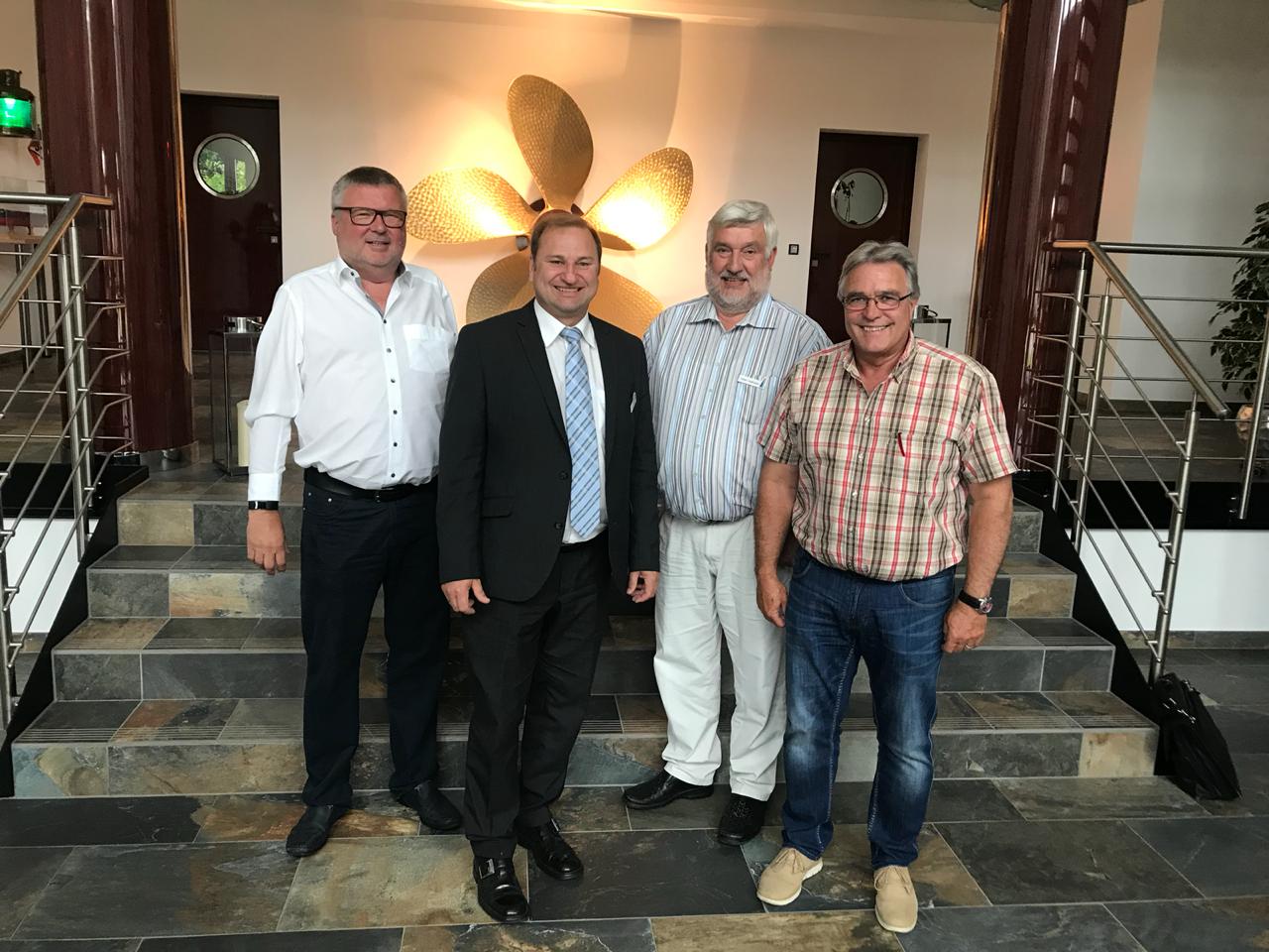 Brunsbüttel: Im Rahmen seiner regelmäßigen Unternehmensbesuche informierte sich CDU Landtagsabgeordneter Volker Nielsen bei der Brunsbüttler Reederei Strahlmann. Nielsen ist es ein besonderes Anliegen, die Straßeninfrastruktur und die Wirtschaftsförderung an der Westküste Schleswig-Holstein voranzubringen. Nord-Ostsee-Kanal und Häfen sind wichtige Lebensandern für die regionale Wirtschaft und den dazu gehörenden Arbeitsmarkt. Aus diesem Grund besuchte der CDU Abgeordnete zusammen mit dem amtierenden Bürgermeister Peter Hollmann und CDU Ortsvorsitzenden Michael Kunkowski die Reederei Strahlmann in Brunsbüttel. Inhaber und Geschäftsführer Erwin Strahlmann stellte seinen Betrieb vor. Mit rund 900 Mitarbeitern und 51 Schiffen gehört das familiengeführte Schifffahrtsunternehmen zu den "Global Playern" aus Schleswig-Holstein. Die firmeneigene Spedition sichert die Versorgung eigener und fremder Schiffe überall in Europa mit Lebensmitteln, Ersatzteilen, Schmierstoffen, Tauen und vielem mehr.