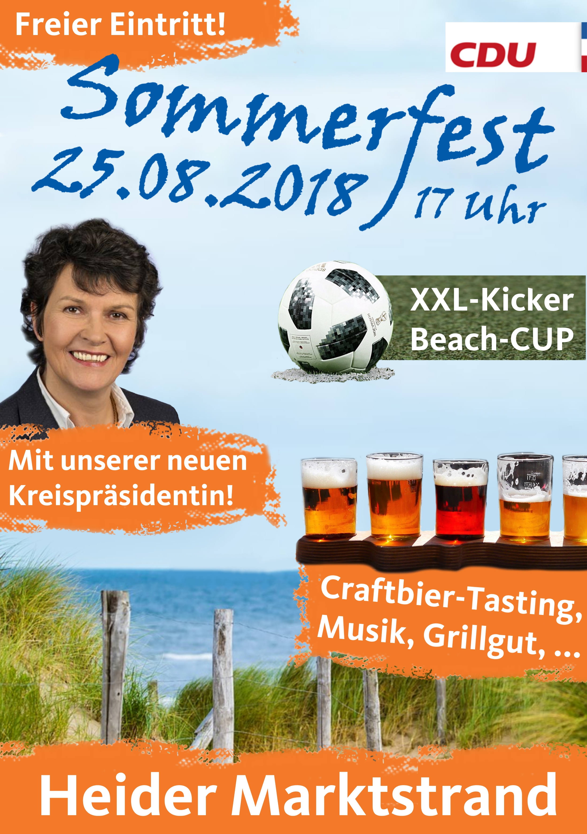 Daher laden wir in diesem Jahr erstmalig zum Sommerfest des CDU Kreisverbandes Dithmarschen ein. Am Samstag, den 25.08. um 17 Uhr sind Strandkörbe, Stühle und gutes Wetter am Heider Marktstrand (auf dem Heider Marktplatz) reserviert.