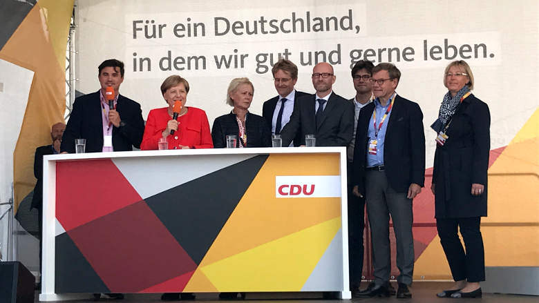 Am 21. August 2017 war es soweit: Bundeskanzlerin Angela Merkel besucht Schleswig-Holsteins Westküste, um die Wähler auf die kommende Bundestagswahl einzustimmen. Bei bestem Wetter und einer „Spitzenstimmung“ zeigte sich die Kanzlerin beim Gang zur Bühne bürgernah. Mit fast 4000 Besuchern wurde so die heiße Phase des Wahlkampfs bei uns im Land gestartet. Ministerpräsident Daniel Günther und die beiden Bundestagskandidaten Astrid Damerow sowie Mark Helfrich sicherten der Kanzlerin am Strand von St. Peter die volle Unterstützung der CDU Schleswig-Holstein zu. Die Kanzlerin sprach Verbesserungen bei der Inneren Sicherheit, eine starke EU und eine engagierte Wirtschafts- und Forschungspolitik an, Kernthemen der CDU Politik. Die Menschen in einem Land mit wenig Rohstoffen müssen innovativ und modern sein. Klar formulierte sie, dass es einen massiven Zuzug von Flüchtlingen wie im Jahr 2015 nicht noch einmal geben wird. Viele Gesetze wurden seitdem verschärft, um Verstöße gegen das Aufenthaltsrecht sofort ahnden zu können. „Mit Angela Merkel an der Spitze unseres Staates wird Deutschland weiter ein Garant für Frieden, Freiheit und Wohlstand in Europa sein“, so Dithmarschens CDU Kreisvorsitzender Volker Nielsen. Die CDU Dithmarschen war mit vielen Abgeordneten aus Land- und Kreistag sowie den Stadt- und Gemeindevertretungen nach St. Peter zum Besuch der Kanzlerin gekommen. Mitarbeiter der Heider CDU Geschäftsstelle halfen bei den organisatorischen Arbeiten für den Auftritt. Dabei wurden auch viele interessante Gespräche an den Wahlkampfständen mit den Wählern geführt. Viele Besucher zeigten sich von der Rede Angela Merkels beeindruckt. „Für ein Deutschland in dem wir gut und gerne leben“, so der Slogan der Bundes CDU zur Wahl am 24. September.